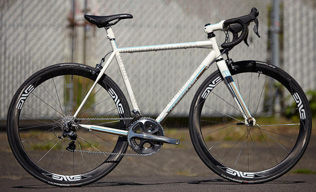 The Cervelo R5ca started its life as Project California in 2010 and has seen racing action and success all over the world. The bike featured here was built up with a lot of passion by Marty Sedluk and although the bike has been updated since this picture was taken, it still looks pretty much like it. A big wow to this 11 pound lust object.