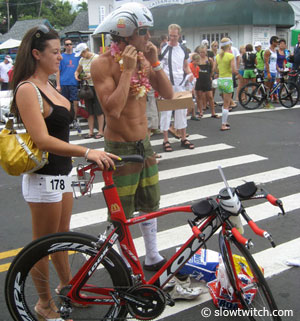 Ben: I would go for the record for $25,000 and it should be only Pro, or amateur too, but only if every body goes out together. It is very different when you go out a few minutes behind. Also, they should put the swim "timing mat" back to just "after the stairs" and not after "the pick up the bags". That is 30 seconds longer than it was before and I was the 1st to step on it, but the swim time was after the "transition tent"! I mean for the record it is important.