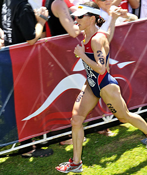 At the end of 2008, Wassner took some time off to marry long time beau John Heppolette at their newly renovated country home in New Paltz, New York. Starting the 2009 season with renewed purpose, she made great strides working with coach Cliff English, highlighted by a long February session at English’s base in Tucson, Arizona. This February she placed second at the Desert Classic Duathlon to Kim Loeffler, then won the Playas ITU Pan American Cup by over 2 minutes. In her win at St. Anthony’s, Wassner showed grit by posting a 5th best 20:29 swim in nasty choppy water, a 4th best 1:01:18 bike that left her second in T2. With a 1:55 deficit to Sara McLarty to erase, Wassner flew to a race-best 35:38 10k run, 17 seconds faster than rising ITU World Cup star Sarah Groff. Perhaps more pertinent, despite a much slower swim, Wassner’s bike and run splits were both faster than Haskins’ 2008 marks.