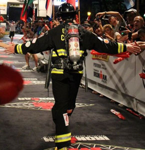 Rob: To date, I have done ten Ironman distance and three 70.3 distance races in full fire gear for the run portion. In 2013, there are seven Ironmans and three 70.3 distance races on the schedule.