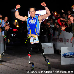 Rudy Garcia-Tolson was born with multiple birth defects and after many, many operations to his legs, he told his parents he would rather be a double amputee. Rudy became a great swimmer, triathlete and warrior and in November of 09 became an Ironman. But his amazing attitude is most impressive.