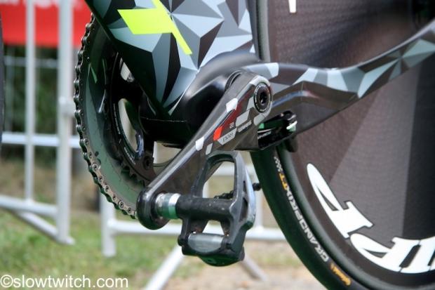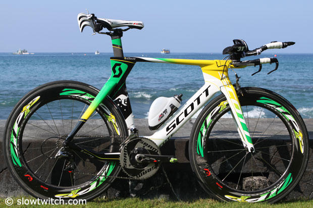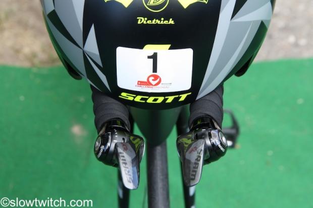 The Scott Plasma of 70.3 World Champion Sebastian Kienle had hidden brakes front and back, and a few other interesting details including a nifty paint scheme. This bike parked in transition at the 2014 Challenge Kraichgau however is quite different in many ways when compared to Luke McKenzie's Scott Plasma 3 race bike in Kona. Is it a cleverly covered prototype of a new bike to come from Scott?