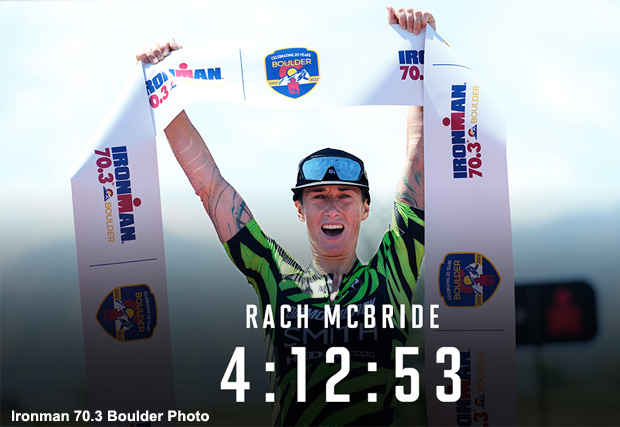McBride’s sixth-best 1:29:15 run was good enough to finish in 4:12:53 with a 3:19 lead on Lesley Smith of the U.S. (4:16:13 run) and 6:37 on third-place finisher Hannah Wells of New Zealand (1:30:47 run).