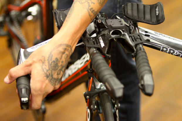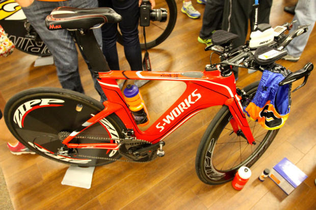 Most of the Pros brought their race bikes to the slowtwitch gathering and here is Kevin Taddonio's Shiv.
