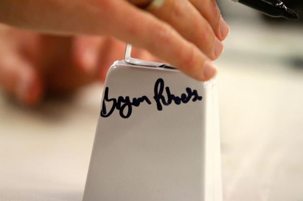Bryan Rhodes and Tyler Butterfield signed Cervelo cowbells at the event. Tyler Butterfield also was clearly working on his Movember mustache.