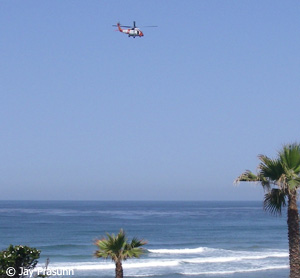 Coast Guard helicopters canvassed the shoreline Friday looking for the shark. California State Law protects great white sharks, so a positive identification may not result in its destruction unless it poses a specific further threat to humans. An aerial Coast Guard search will continue until 6 p.m. today, and will resume at daylight and take place through the weekend.