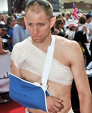 Making that performance even more remarkable, Starykowicz suffered a broken collar bone, serious nerve damage and pushed the head of his right humerus through the labrum in an accidental collision with an aid station volunteer while leading the March 3 Abu Dhabi International Triathlon. After the crash, Starykowicz stopped to make sure that the volunteer was receiving medical attention before continuing, but his injuries forced him to withdraw after finishing the bike. After a month in which he was held by United Arab Emirates authorities who contemplated charging him with manslaughter, Starykowicz was released after paying a substantial bond. After surgery and a remarkably swift rehabilitation, he returned to competition in October, placing 1st and 2nd at two Rev3 half Ironman distance races before his win at Florida. In his 4th race in 6 weeks he placed 7th at Ironman Arizona where his 4:16 split broke the course bike record by 6 minutes.