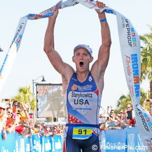 Collins and Starykowicz were well into the run when O'Donnell and Billard started the final segment running in third and fourth position, and at about 10k into the run Collins had a lead of over 4 minutes on Starykowicz, but a couple miles later the wheels came off and soon after Collins dropped out and had to visit the medical tent. The race best run belonged to Chris Baird in 1:15:50, but he did not factor in the podium fight after a 30:28 swim and a 2:11:56 bike. Among those running in the top 5 it was Billard who bested the others with his 1:17:49 run split, and that allowed him to charge past O'Donnell into second place. 50 seconds earlier though Starykowicz had already claimed the win with a closing 1:21:41 run and a total race time of 3:50:12.
