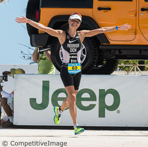 German Olympian Bazlen then stormed into the lead on the bike with a race best 2:15:43 effort, but Federiksen was not far behind after her 2:16:29 bike split. The rest of the field needed 2:20 or more for the 56 mile bike segment and some of them including Caitlin Snow, Linsey Corbin and Mirinda Carfrae needed over 2:30. Carfrae though apparently had crashed early on during the bike segment and that may also explain her somewhat slow run.