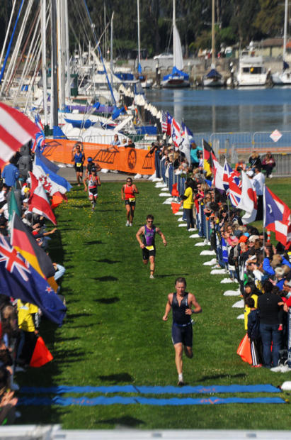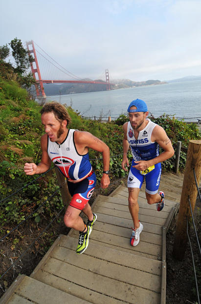 The pro field was a bit smaller but prize money was a solid $40,000, which outranked two Life Time Fitness series events. But the races were hot and the joyous spectacle of racing through San Francisco Bay, riding through Fort Point and the Presidio, past the golf course and the Legion of Honor Museum, down the Cliff House decline, into and out of Golden Gate Park, then running out to Baker Beach , back up the sand ladder and finishing on the Marina grass chute was, once again, exuberant, challenging and fun.