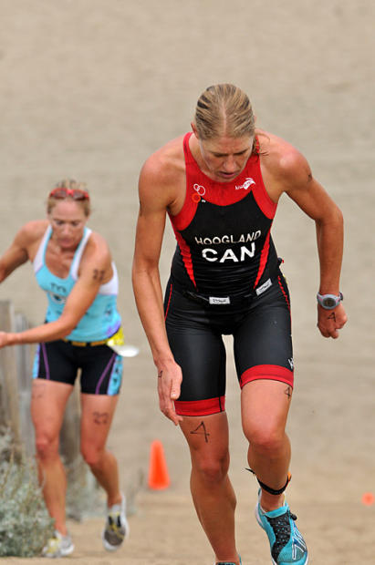 Canada's Tenille Hoogland chased Amanda Stevens throughout the bike, later made the kill for the win on the sand ladder.