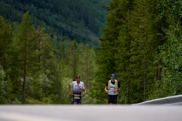 Things finally got slightly warmer about 4 hours into the ride. Still no feeling in my feet, but I was at least able to grab my food and drink. I remember saying out loud, “yes, I can grab a gel!” I quickly realized that even though it was getting warmer, especially on the up hills, there were little or no flat sections so the down hills just got me cold all over again. Therefore, no need to take off gloves, arm warmers, or beanie. The bike course took us through some of the most beautiful places in Norway, so I tried my best to look around from time to time to enjoy it. It went through places that are not seen and felt by very many people. After all, this was a little more of an adventure than competition. As the end of the bike came near, I calculated I was in the top 30 or so overall. That boosted my spirits as my ultimate goal was to earn the coveted black t-shirt for being a top 160 finisher. Total bike time: 6:30, approx 10,500ft of climbing.