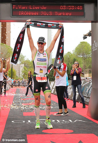 Frederik Van Lierde of Belgium combined a 2nd-best swim, a dominating bike split and a 6th-fastest run to win the men’s title, and fellow Belgian Alexandra Tondeur topped Gurutze Frades of Spain by a 2:01 margin to win the women’s crown, at Ironman 70.3 Turkey.