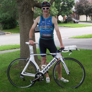 Andrew: I tried the Smiths' Falls Triathlon, a local sprint that's been around 30+ years in 2003 as a couple of friends were prepping for Ironman Canada. I had a blast, swam breast stroke (thought I would die), biked in sneakers and toe clips (got crushed) then ran like hell. Life got in the way until 2005 but I was hooked.