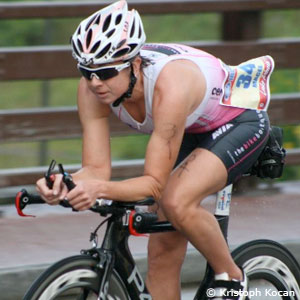 Once on the bike, Macel showed that she isn't a one trick pony and pulled further away from the competition with relative ease. Samantha McGlone had passed Biscay for second place early during the bike but by mile 45, Tara Norton had moved into second place just ahead of McGlone. By now Macel was almost 12 minutes up on her pursuers and riding among the top 10 men. Macel's lead rubber banded a bit, but by the time she hit T2, she was up almost 14 minutes on Norton. McGlone entered the bike-run transition another 6 minutes later.