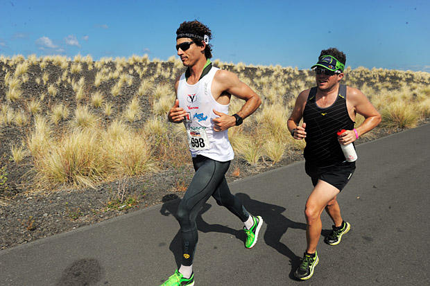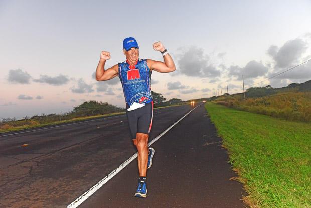The fleetest feet on this final day of the 31st Ultraman belonged to David Kalinowski of Australia, who covered 52.4 miles in 6 hours 32 minutes and 59 seconds. But the superior bike skills wrought by Michael Coughlin of Canada provided a 42 minute cushion before the run and the Canadian hung tough with a 6:48:02 double marathon to preserve the victory. Another form of victory belonged to the woman who posted the slowest double marathon. But Iona McKenzie of Yellowknife, Northern Territories, Canada found her 11 hours 34 minutes and 24 seconds run good enough to earn an official finish despite myriad problems on all three days.