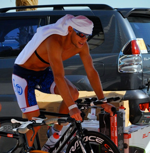 The two leaders left the swim-bike transition side-by-side, but Dibens quickly distanced herself from her British counterpart and built up an almost 2 minute lead by the time she entered the Yas Marina Circuit for the first time. Steffen was soon riding near Cave, but the advantage of Dibens kept growing. By the time they came back to the Yas Marina, Dibens was up almost 5 minutes on Steffen and more than 10 minutes on Cave. The Trek / K-Swiss Pro though kept pushing the hard pace up front and steadily moved further and further away and pretty much doubled that lead. Unlike the men who were mostly riding in a couple bigger groups, the females seemed to be more spread out.