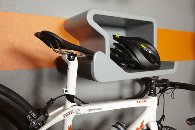We posted about the Shelfie bike storage on Twitter and Facebook last week and this Kickstarter project has since reached its funding goals, but the kickstarter campaign will still run for 47 days and offers you thus the opportunity to get in early on this very nifty product. The man behind the Shelfie is Jürgen Beneke, a German mountain biker who had great downhill racing success in the 90s and now resides in Kingston, NY. This Shelfie is a great solution for someone who wants to display their bike in the living room or office and makes the whole thing become an artwork of sorts. Depending of course what is on it.