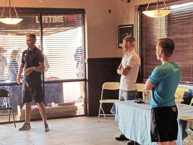 Back to Tempe, Lewis Elliott is one of the hot pros in town. Here he is with Slowtwitch publisher Dan Empfield (Slowman on the Slowtwitch Reader Forum).