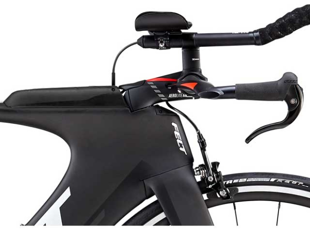 Felt does not do this. Yes, it makes its own bars, but not as a cost-cutting measure, rather because it likes its own aerobars. Do I like its aerobars? Yes and no. I prefer a single clamp that both the armrests and extensions affix to, rather than one clamp attaching the extension to the pursuit bar and a second clamp attaching the armrest to the extension. That said, Felt claims its armrest clamps have more surface area than the Profile Design J2 (a style Profile is phasing out over time from its line), so the pressure exerted by the armrest clamp on the extension is distributed over a wider area. Because of this, Felt is fine spec’ing a carbon extension in some of its higher end bikes using this very clamp style. Me, I’m still sold on one clamp that accepts armrests and extensions, rather than saddling extensions with the duty of supporting the armrests. But Felt is aware of the potential shortcomings of this style of aerobar manufacture and feels it has inoculated itself against them.