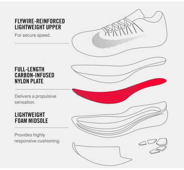 The Zoom Fly and the other version, the Zoom Fly 4%, flow from the models used by the Breaking 2 project (below). The 4% is the more expensive and lighter version with a full carbon plate. Very hard to get your hands on! And I haven’t yet! So that review is still forthcoming. It’s just the Fly in this review.