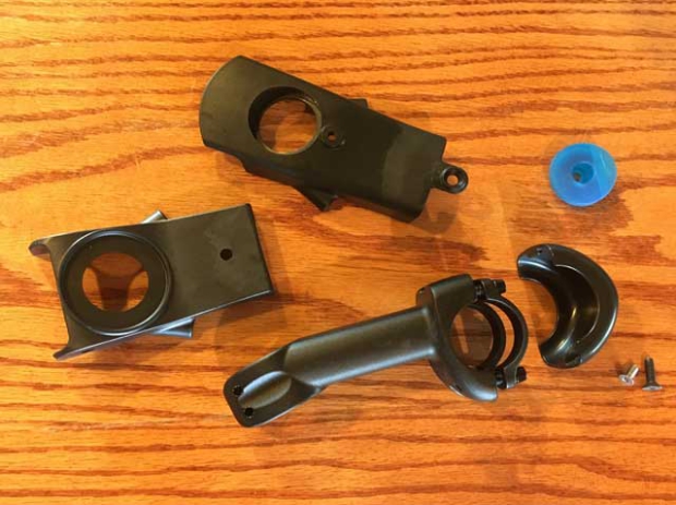 It also comes with a plastic nose piece to clean up the front, as the old stem did, but one of the casualties of this stem change is that the old stem’s plastic nose cone (just below) housed as a Di2 junction box.