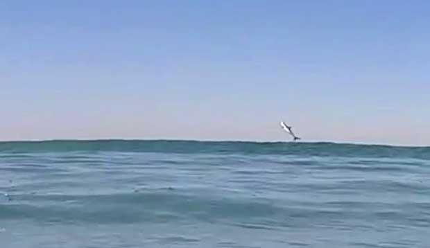 California triathletes, divers and surfers know that they share the ocean. Two Sunset (Huntington) Beach surfers found that out unwittingly while shooting GoPro video.