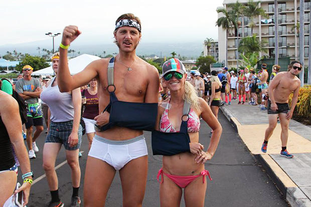 A day before leaving for Kona BJ Christenson fractured a scapula, but that did not stop him, it merely altered his race plan. And apparently the race view is different at the back of the bus.