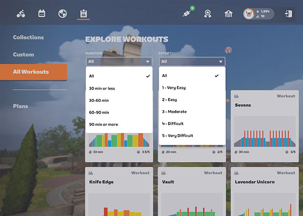 There’s a new font and that’s what’s immediately obvious. Much more importantly there’s a new UX (User Experience) that greets you after you boot the Game and pair your devices. This includes a new set of tabs, menus and filters that make it a lot easier to hunt for workouts, rides and routes.