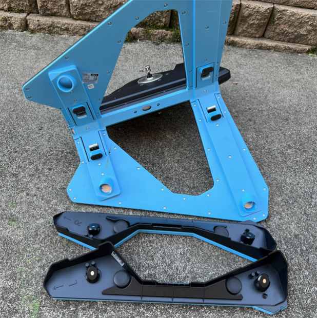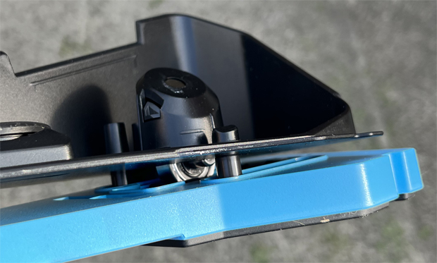 Turn it over and put it on the floor. The only adjustment you need to make is to align the little notches on the rear of the slides and bases – easy. You need to do this because the two plates move independently, so you could have one slide forward and the other slide backward, and thus would get no motion. Realistically, you probably would not make this mistake, but Garmin’s design makes it easy to get right.