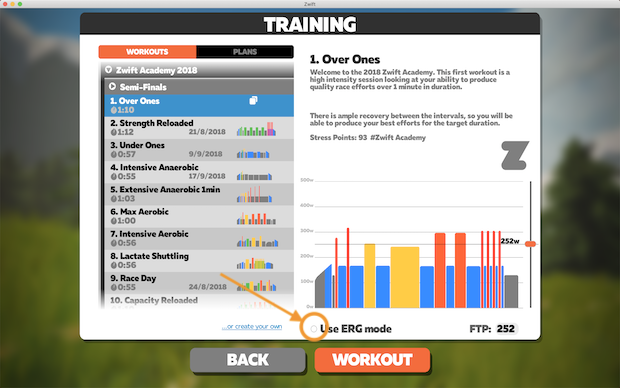 Erg Mode is the default option for Workout Mode in Zwift, so if you've never actually paid attention to whether or not Erg Mode was on or not, you may have been using it this whole time without ever knowing. For most typical workouts – things like SST or The MCarthy Special, Erg Mode works just fine. As with (almost) every approach to training, there are those who insist that it has no place in "proper" training and those who insist it's the only way to train indoors. Again, as with most every approach to training, the truth is somewhere in between.
