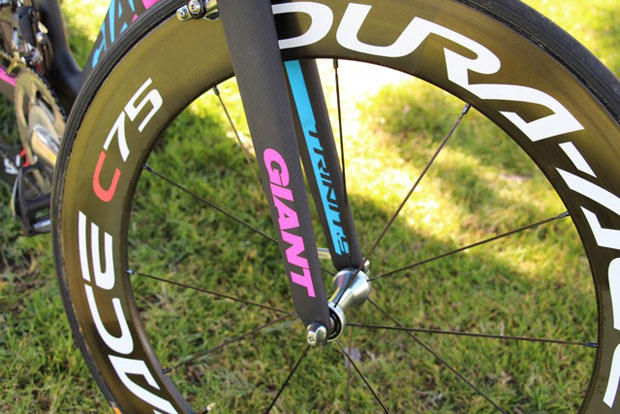 We recently noticed the unique paint scheme on the Giant Trinity Advanced SL of age grouper Daniel MacPherson. The fast Aussie currently resides in Los Angeles and he will soon be interviewed as a random age grouper, but now we look closer at the bike that was custom painted by Giant Bikes in Melbourne, Australia.