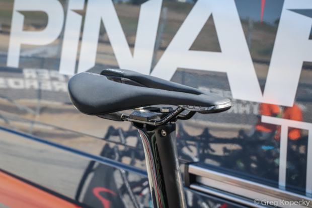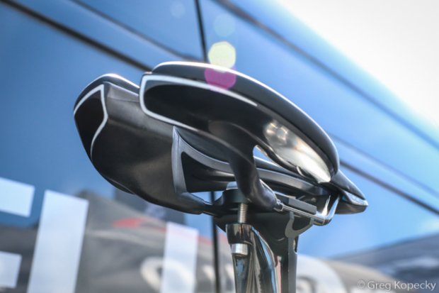 The saddle appears to be a unique version of the new Selle Italia SLR Boost line, with some very slick-looking air vents underneath.
