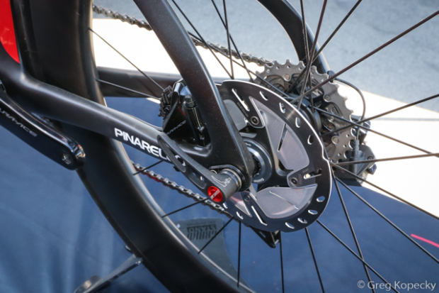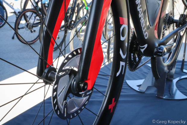 Perhaps the biggest update with the new Bolide TR+ is in the braking department. Rim brakes are out – disc brakes are in. The front fork uses a molded-in shroud on the left leg to help shield the hydraulic caliper.