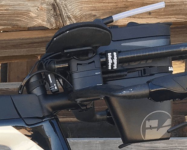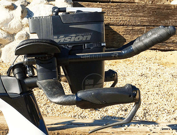 Let me be precise (and maybe picky). I believe that the Metron hydration, in Cervelo's own pics, show the lower mount and the Bento attached, but on the bike I'm showing here I have the hydration system pushed several centimeters back, because I don't want a full tank of fluid that far in front of the steerer. That's why the Bento got sacrificed.