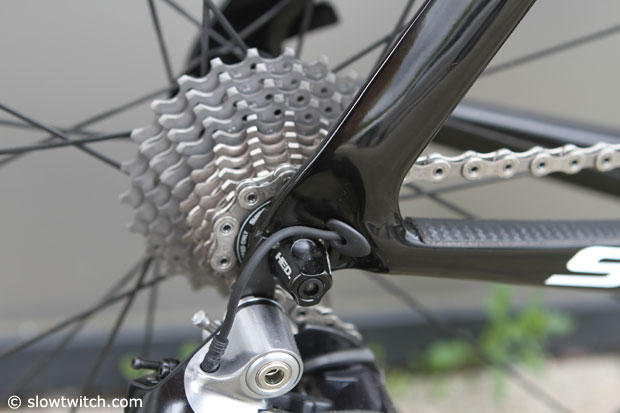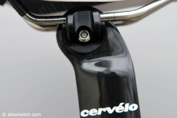 Up close with the seatpost clamp on the S5. In a size 48 it comes with the 2 position post.