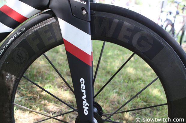 Bachor rides a Lightweight Fernweg wheel up front with Continental GrandPrix TT tires. In the rear it is a Lightweight Autobahn disc.