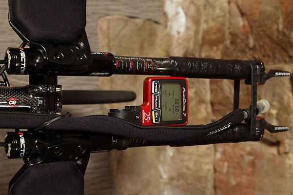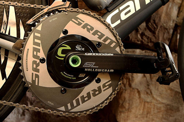 The SRM powermeter on the Cannondale Si SL Hollowgram cranks with SRAM chainrings.