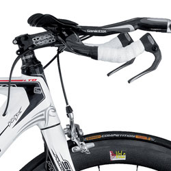 They’ll do so on the back of nifty new bar-end shifters and plug-in brake levers that neither Campy nor Shimano can match; early and eager adoption of compact-style cranks; a chain with a sensible master link; parts that compare favorably — if not yet quite comparably — with those made by Shimano and Campagnolo and, quite soon, wheels from an acquired company triathletes know and love.
