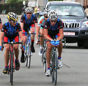 Andy: My middle son A.J. is a better cyclist at age 16 than I ever was, or will be. He's been fortunate enough to be selected to race the last 2 summers with the 15-16 year old U.S. National Team in Belgium. You can see him driving the break during a race in Belgium in the picture. (Ed. left) He also placed 4th in the road race and 2nd in the criterium at this years Junior Nationals. My father (A.J. grandfather) and I have been shuffling him around the country to races for the last few years. We play mechanic, masseur, cook, driver and on occasion proud parent. Since I'm at these events with A.J., I try to race the masters if I can, but sometimes it is more important that he has all the support needs. We are on opposite ends of the athletic development curve; he's on the way up and well let's say I've seen better days. I get him through a race, then after that, I can train or I get up early in the morning and fit in a workout. It's all about time management skills! I've been fortunate to meet so many good people that have actually helped me with A.J. and my training; Coach Brown and his son Nathan, Lynn and Bill Joslin, Chris and Lori Harkey, Steve Carpenter, Rich Hincapie, Marshall Martin, Jeff Gibson, Ron Swope, Saul Raisin and the Scenic City Velo club.