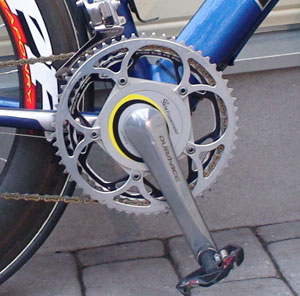 Ain: I am using an SRM Dura-Ace 180mm 58/50. My first power meter was from Ergomo and it was working very well and I was pleased with it. But I am using 180mm cranks and with my weight I wanted to make sure that I am not losing too much watts through an old fashioned BB. So I changed to the SRM Dura-Ace system and it has been serving me well so far. The chain rings were highly recommended by Steve Hed through my coach Jimmy Riccitello.