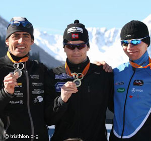 Holzinger pushed the pace on the mountain bike too and came off the bike with a 1 minute lead. But a slow transition diminished that lead to less than 15 seconds and on the skis he quickly had Arne Post breathing down his neck. The defending champion had the fastest split of the day and easily earned his fourth World Championship title in a time of 1:37:30. Lebrun managed to take silver and Svanebo closed the day out strong to take the bronze. Holzinger dropped all the way back to eighth place and two-time World Champion Sigi Bauer of Austria was forced to pull out after a flat tire early on in the bike segment.