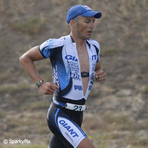 Mitch: Actually an ex-girlfriend and Damien Angus. Jane got me into triathlon when I got to Melbourne University in 1994. She and I went and did some 300/8/3 mini-tri and I came second off the bat. I realized I might be good at the caper. I would never have done Ironman had Damien not said to me in 1999, "you've just run the Melbourne Marathon, there's no reason why you can't come and do Forster in 6 months!!" So I gave it a go, and did a 9h7m first effort, again 2nd in my age-group. I was absolutely hooked!