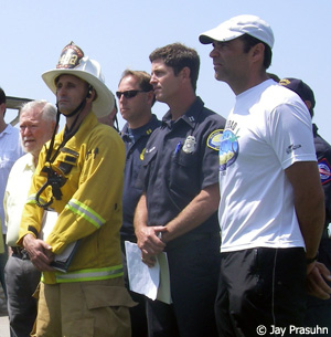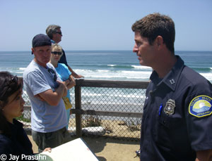 Pat Muirragui, 36, one of Martin's San Diego Tri Club teammates, stood overlooking the ocean on the bluff following the press conference, trying to make sense of the attack. "I got a text to go out with them this morning at 6:30, but it was too early for me—I prefer the evening (La Jolla) cove swim," Muirragui said. "They go out for a mile, come back and have breakfast at Naked Café. My friend Loreen was out swimming with them, though, and when I heard the news, I was horrified—I thought it could have been Loreen, but in general, my heart just sunk."