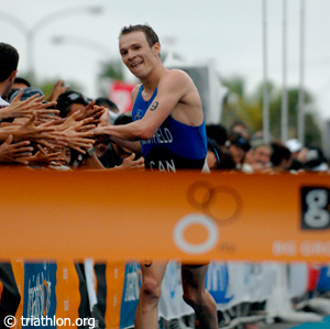 Lisbon, Portugal, May 10: Frederic Belaubre won the 2008 European Triathlon Championships and thus earned his 3rd European title in 4 years. Vanessa Fernandes was victorious in the women’s race and now has won a record 5 titles, and that is not even counting her U23 and Junior crowns.