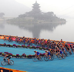 These things are almost always impossible to predict. Which makes this endeavor an amusing fantasy, not unlike playing the lottery. Still, there are important factors. Number one: This course is nothing like Athens with its killer steep hill which created the opportunity for Hamish Carter and Bevan Docherty to make a major breakaway. Not is it nearly as steep or as long as the recent ITU World Championship in Vancouver. Beijing's hill lasts half a mile and rises only 170 feet. No matter that riders will come back to it 6 times, it will remain a blip on the best riders power meters – not a make or break obstacle. Further ruling out a decisive bike leg is what follows — a bobsled-style 1.5-mile curving downhill whose steep side walls create an amplified drafting effect. If you noticed in the women’s race, the USA’s Julie Ertel got dusted on every trip up the hill, but easily (almost freewheeling) caught up to the 20-woman main pack on the downhill. Despite the fact that several strong swimmer-bikers would love to break away, the field lacks the engines that might make it work – Andy Potts and recently retired Craig Walton. For all Olivier Marceau and Matt Reed and Colin Jenkins might try, they don't have the collective horsepower to leave the anticipated huge pack. Which will make the bike a test of who can use no energy but stay out of trouble riding in the middle of the anticipated 50-strong main pack – just like the 2007 World Cup on the same track at Shinsanling Reservoir.