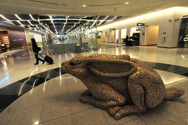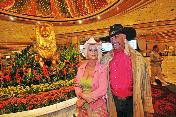 Real life Lion and Lioness in Winter by MGM Grand golden lion