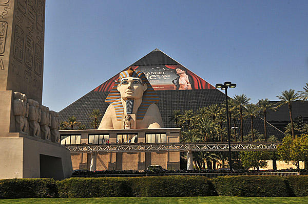 Luxor pyramid and Phaoronic guardian — with a soul patch