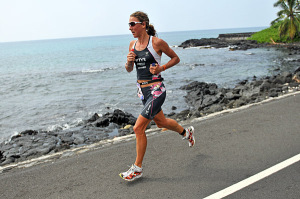 KAILUA-KONA, The Big Island of Hawaii – Last year the brilliant new Quantum Leap Up the Ironman Evolutionary Chain had the rookie good manners to wait until mile 80 of the bike before putting her stamp on the race. But the new 2008 model Chrissie Wellington charged along the Queen Kaahumanu Highway with the insistence of the heroine of Spike Lee's She's Gotta Have It. This year, Wellington emerged from the waters of Kailua Bay not five minutes down on the women’s leaders as she had the year before, but a minuscule 2 minutes back of Team TBB teammate Hilary Biscay, Ginas Kehr and Ferguson, Massachusetts pro Dede Griesbauer, penitent pro Nina Kraft, and 2002 short course World Champion Leanda Cave. In contrast to the stealth longshot of 2007, Wellington looked more like a lion running down antelopes as she carved up the last of the pretenders by the Hawaii Veterans Cemetery at Mile 20.