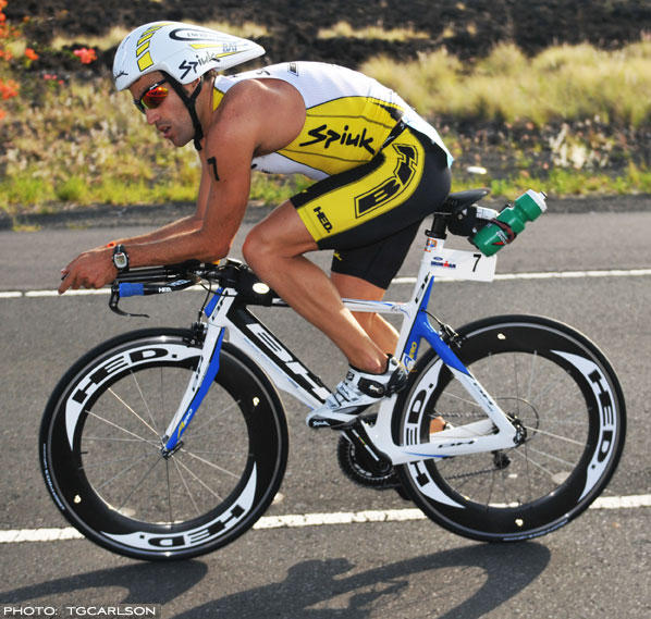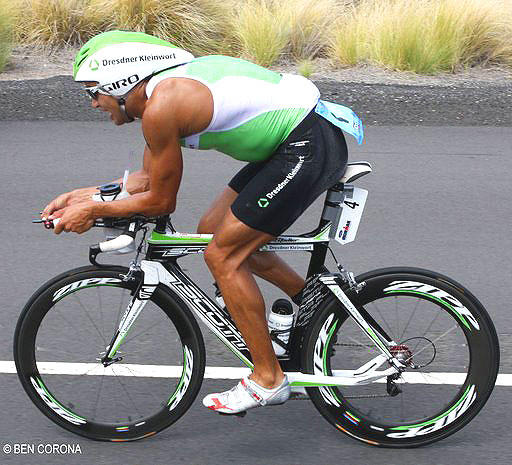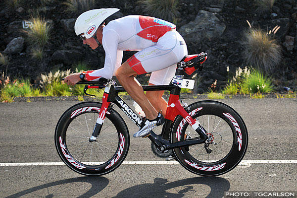 Ain Alar Juhanson, owner of this year's fastest bike split in Kona, is a picture of power and aerodynamics with his flat back and compact upper body.